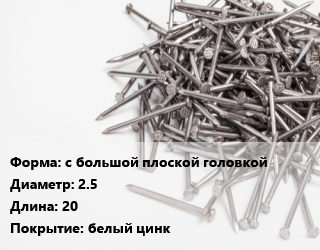 Гвоздь с большой плоской головкой 2.5х20 белый цинк