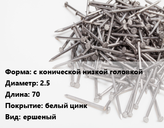 Гвоздь с конической низкой головкой 2.5х70 белый цинк ершеный