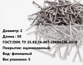 Гвоздь 2х50 ГОСТ: ТУ 25.93.14-007-29684338-2018 оцинкованный финишный 5
