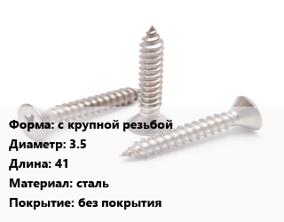 Саморез с крупной резьбой D=3.5 L=41 сталь без покрытия