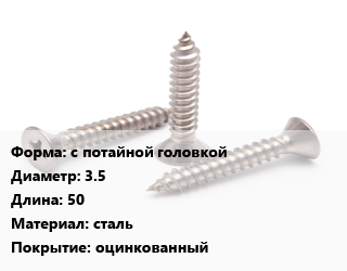 Саморез с потайной головкой D=3.5 L=50 сталь оцинкованный, кг цена от 296.54 Р / кг, где купить, условия доставки в Гомеле и Гомельской области