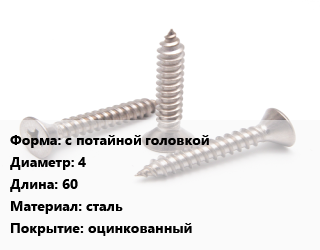 Саморез с потайной головкой D=4 L=60 сталь оцинкованный