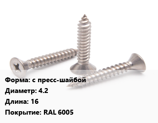 Саморез с пресс-шайбой D=4.2 L=16 RAL 6005, упаковка 1000 шт цена от 1 440 Р / кг, где купить, условия доставки в Гомеле и Гомельской области
