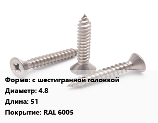 Саморез с шестигранной головкой D=4.8 L=51 RAL 6005