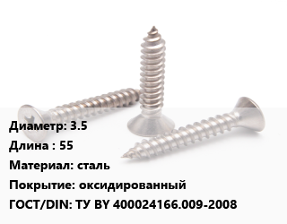 Саморез 3.5 L=55 сталь оксидированный ГОСТ: ТУ BY 400024166.009-2008, кг, для металла, РМЗ цена от 145.13 Р / кг, где купить, условия доставки в Гомеле и Гомельской области