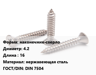 Саморез наконечник-сверло D=4.2 L=16 нержавеющая сталь ГОСТ: DIN 7504