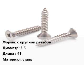 Саморез с крупной резьбой D=3.5 L=45 сталь, упаковка 45 шт цена от 81 Р / кг, где купить, условия доставки в Гомеле и Гомельской области