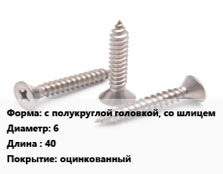 Саморез с полукруглой головкой, со шлицем D=6 L=40 оцинкованный, кг цена от 883.38 Р / кг, где купить, условия доставки в Гомеле и Гомельской области