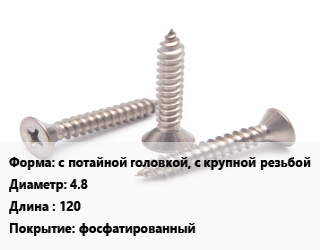 Саморез с потайной головкой, с крупной резьбой D=4.8 L=120 фосфатированный