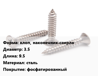 Саморез клоп, наконечник-сверло D=3.5 L=9.5 сталь фосфатированный, упаковка 1000 шт, для металла цена от 627.72 Р / кг, где купить, условия доставки в Гомеле и Гомельской области
