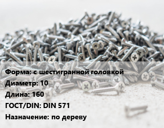 Шуруп с шестигранной головкой 10х160 ГОСТ: DIN 571 по дереву