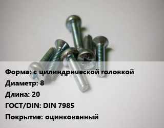Винт с цилиндрической головкой 8х20 DIN 7985 оцинкованный, цена за шт, кг цена от 9.59 Р / кг, где купить, условия доставки в Гомеле и Гомельской области