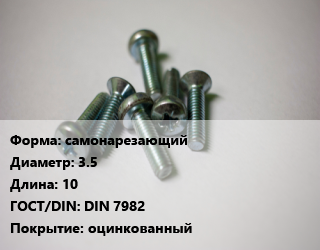 Винт самонарезающий 3.5х10 DIN 7982 оцинкованный