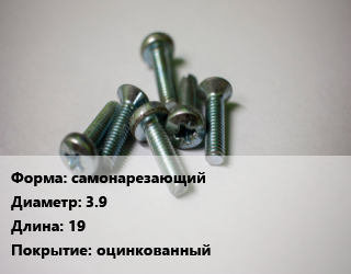 Винт самонарезающий 3.9х19 оцинкованный, чертеж 7811-7385, кг цена от 126.83 Р / кг, где купить, условия доставки в Гомеле и Гомельской области