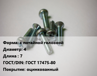 Винт с потайной головкой 4х7 ГОСТ 17475-80 оцинкованный