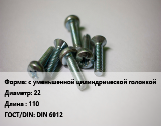Винт с уменьшенной цилиндрической головкой 22х110 DIN 6912