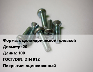 Винт с цилиндрической головкой 20х100 DIN 912 оцинкованный, 8.8, кг цена от 251.8 Р / кг, где купить, условия доставки в Гомеле и Гомельской области