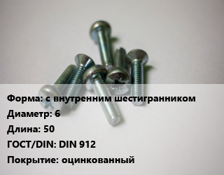 Винт с внутренним шестигранником 6х50 DIN 912 оцинкованный, 10.9,8.8, цена за шт,1 кг,Китай,упаковка 1 кг, кг цена от 349.13 Р / кг, где купить, условия доставки в Гомеле и Гомельской области