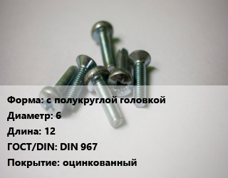 Винт с полукруглой головкой 6х12 DIN 967 оцинкованный