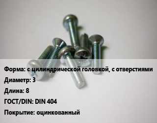Винт с цилиндрической головкой, с отверстиями 3х8 DIN 404 оцинкованный, 5.8, цена за шт, кг цена от 79.2 Р / кг, где купить, условия доставки в Гомеле и Гомельской области