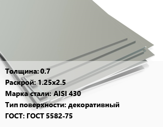 Лист нержавеющий 0.7 1.25х2.5 Сталь: AISI 430 Тип:декоративный ГОСТ 5582-75, шт цена от 4 134 Р / т, где купить, условия доставки в Гомеле и Гомельской области