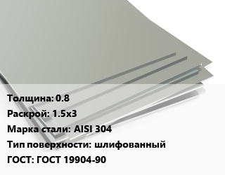 Лист нержавеющий 0.8 1.5х3 Сталь: AISI 304 Тип:шлифованный ГОСТ 19904-90