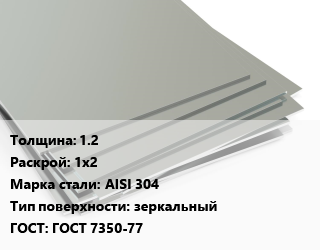Лист нержавеющий 1.2 1х2 Сталь: AISI 304 Тип:зеркальный ГОСТ 7350-77
